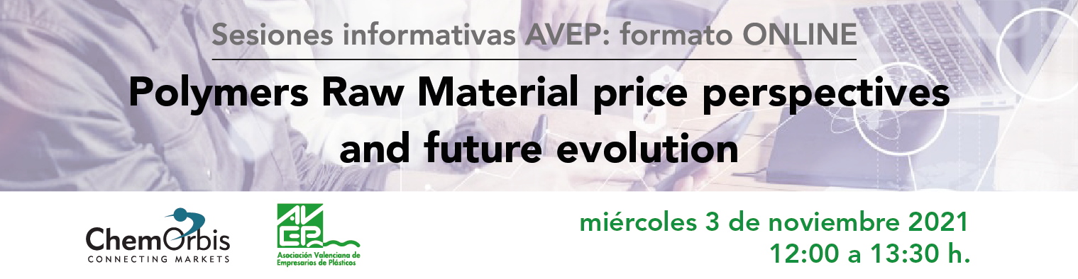 Contexto: La evolución de precios de materias primas ha tenido un comportamiento alcista generalizado que preocupa y afecta drásticamente a los precios de venta de la industria transformadora. La revisión de dichos precios pedido a pedido se ha hecho necesario por el elevado impacto del incremento de precios de materia sobre el producto final. Dentro de nuestras sesiones de webinars para asociados, y con objeto de analizar esta situación y conocer las previsiones futuras de la evolución de los principales materiales (PP, PE, PVC, PET y PS) les invitamos a unirse a esta sesión a cargo de ChemOrbis, firma especializada en Precios, Noticas y Tendencias de los Mercados Globales de Polímeros.